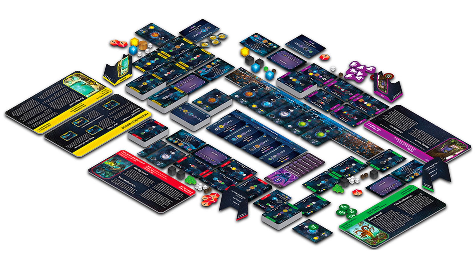 Sidereal Confluence is all about gut instinct and shrewd deals. The basics of the game are that you are trying to acquire different cards that allow you to convert resources in different ways, eventually converting those resources into points. It’s up to you to get just the right cards to create the most efficient engine possible. The trick is, some of the resources you’ll need can only be gained from other players, so you have to get what you need without giving too much in return. How do you do that? Negotiate and trade your way to victory. With up to nine players there can be a lot to keep track of, and it can be difficult to perfectly quantify what makes a good trade or what might be useful. All the same, Sidereal Confluence will let you negotiate and trade to your heart’s content.